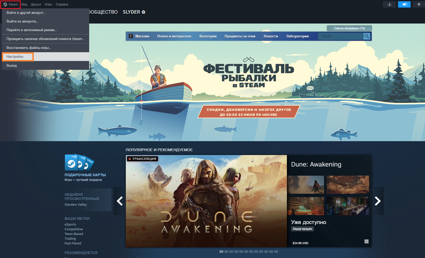ШАГ 2. Открыть Steam и перейти в Настройки / Settings.
